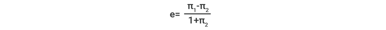 Donde “e” representa el cambio en el tipo de cambio y “π1” y “π2” representa las tasas de inflación para el país 1 y el campo 2, respectivamente.