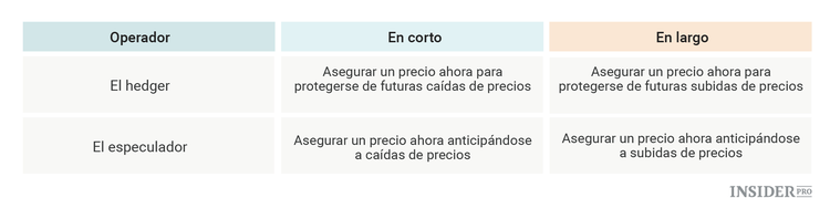 Los actores del mercado de futuros se dividen en dos categorías: hedgers y especuladores.