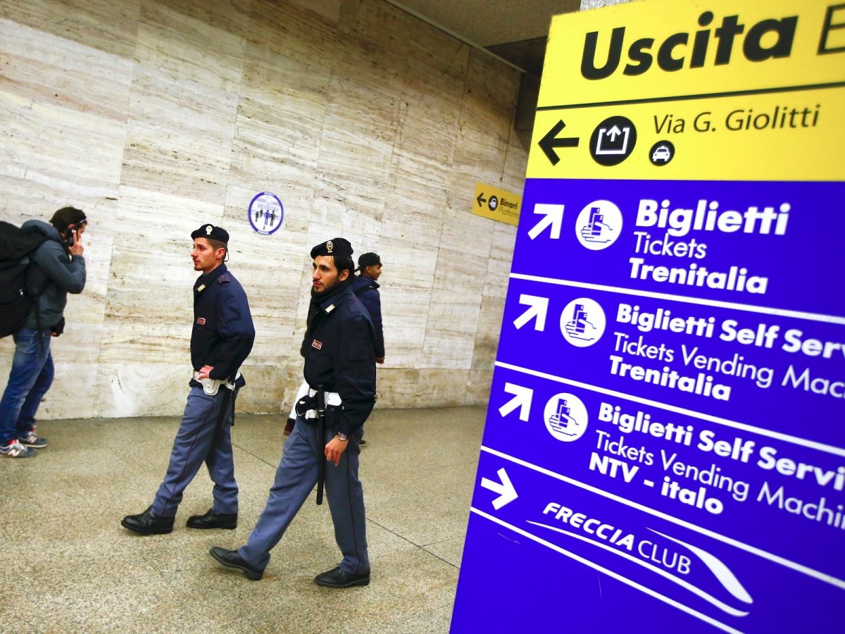 1/5 Agentes de policía patrullan en la estación de trenes en Roma el 25 de enero