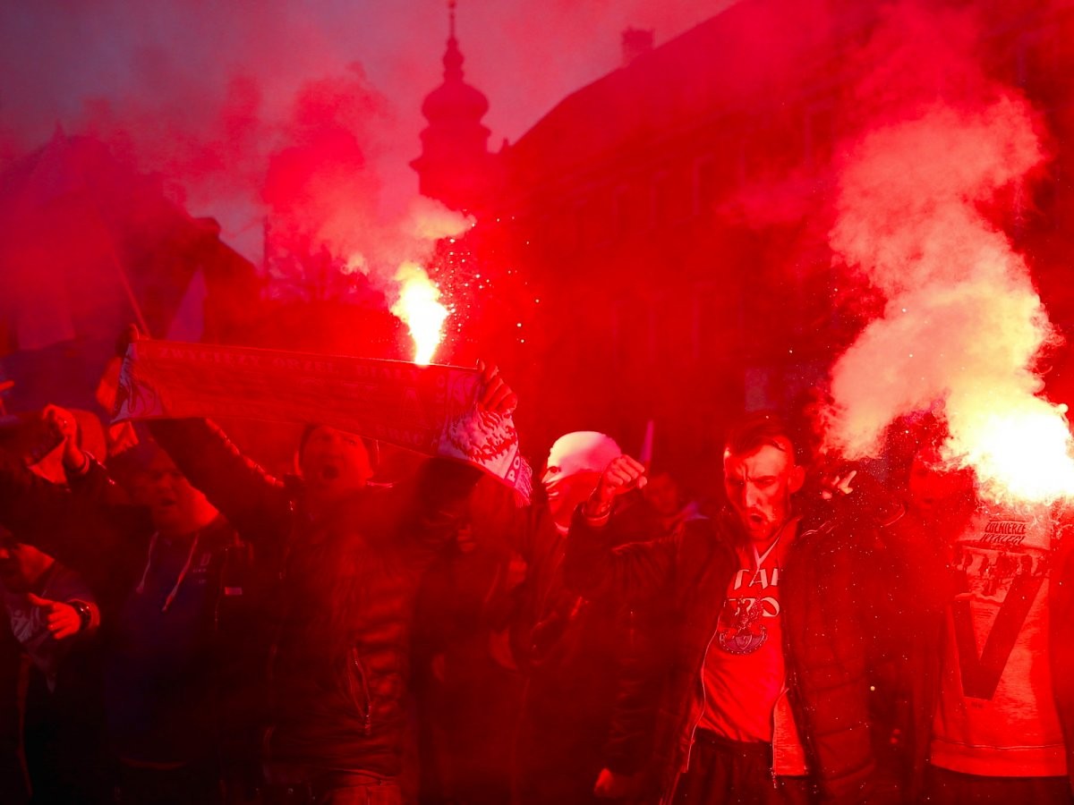 1/5 Manifestantes durante una manifestación antiinmigración frente al Castillo Real de Varsovia el 6 de febrero
