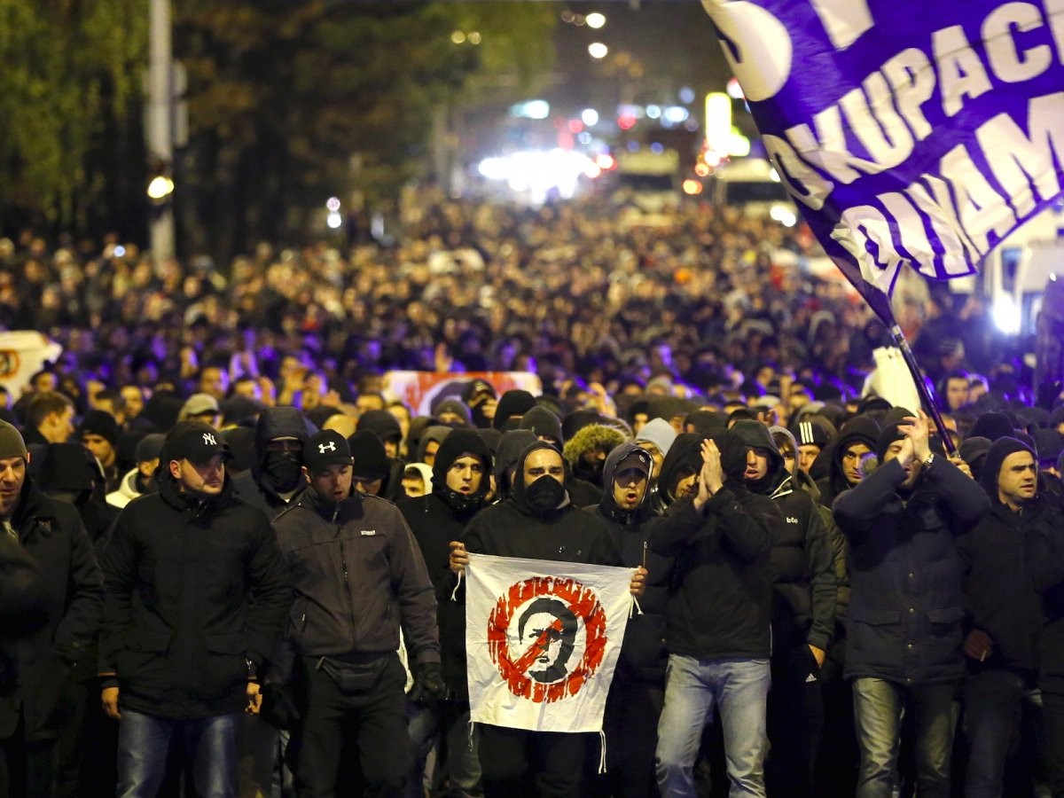 1/5 Los Bad Blue Boys, hinchas del club de fútbol Dinamo Zagreb, protestan cerca del edificio del Ministerio de Educación, Ciencia y Deporte en Zagreb, Croacia, el 27 de noviembre